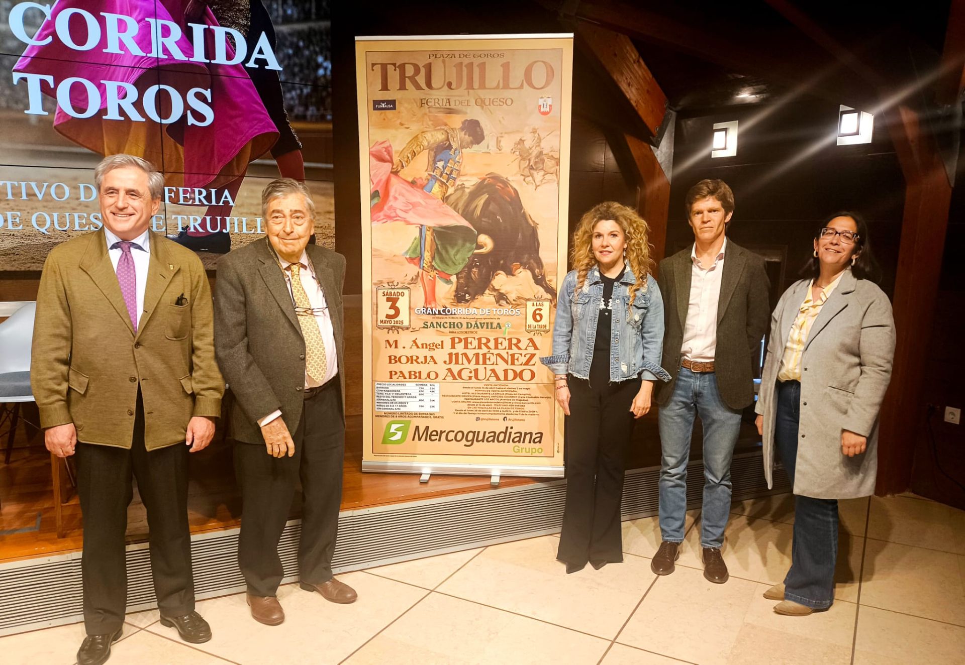 La ciudad volverá a contar con una corrida de toros con motivo de la Feria Nacional del Queso. Este evento tendrá lugar en mayo, con un cartel formado por tres figuras del toreo. Se trata de Miguel Ángel Perera, Borja Jiménez y Pablo Aguado, que torearán seis toros de la ganadería de Sancho Dávila. Así fue presentado ayer en un acto que tuvo lugar en el Palacio de los Barrantes Cervantes, con la presencia del consejero de Gestión Forestal y Mundo Rural, Ignacio Higuero; la alcaldesa, Inés Rubio; y el embajador de Honduras en España. También estuvieron el maestro Borja Jiménez, quien es la primera vez que toreará en la ciudad trujillana, y el propio ganadero, a quien le gustaría indultar a uno de sus toros esa tarde. Ambos confían en que se celebre una buena corrida de toros, organizada por la empresa Funtausa.