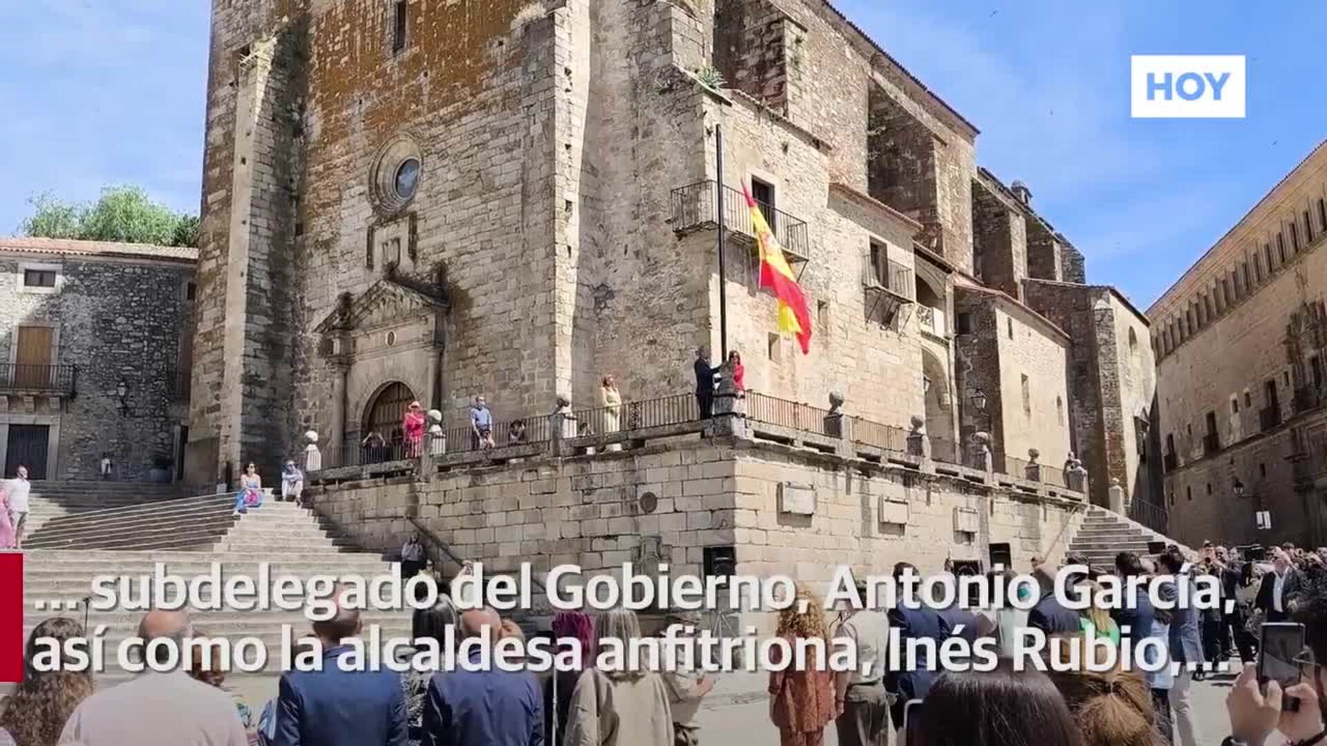La plaza Mayor de Trujillo acoge el izado de la bandera