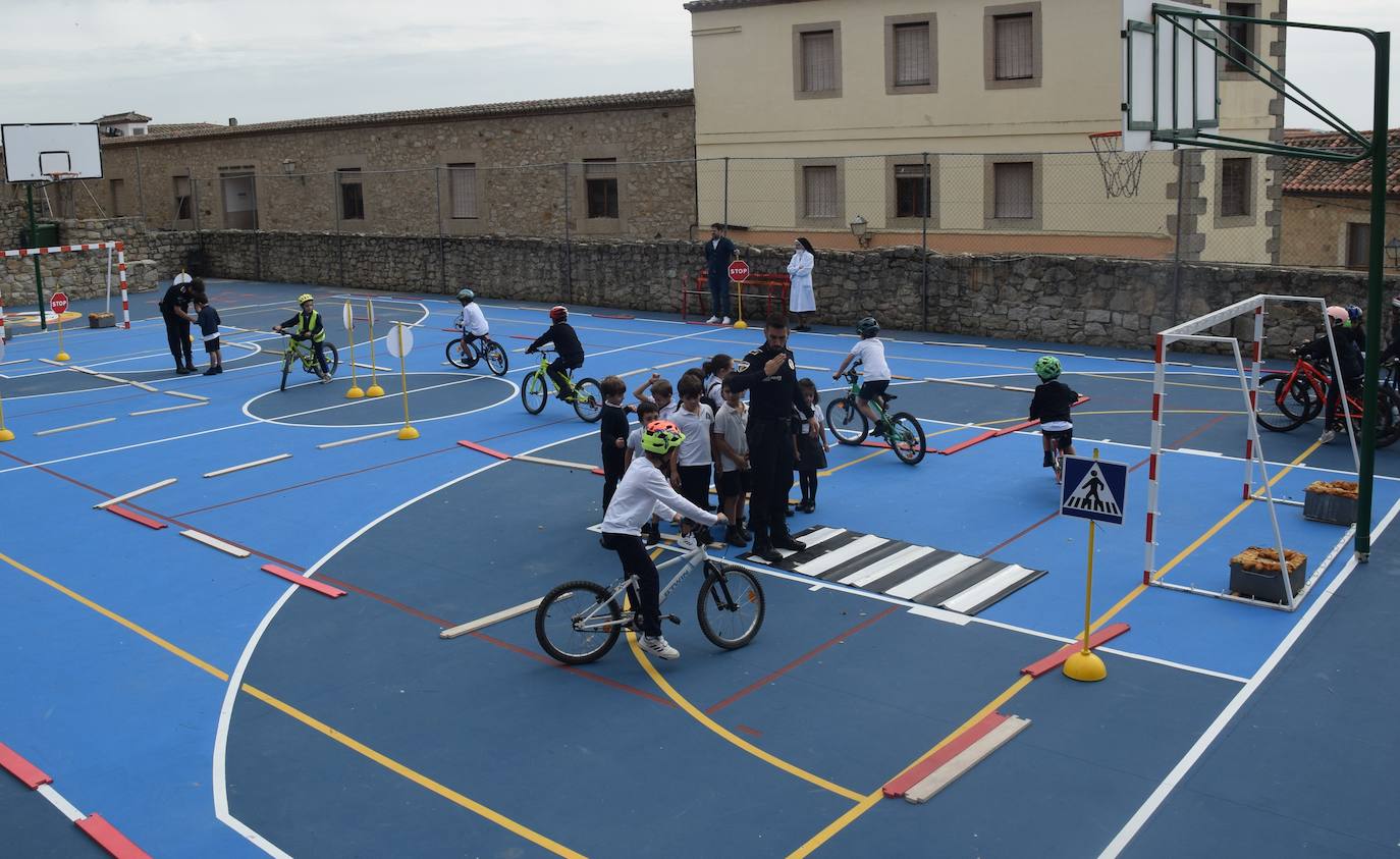 Las sesiones se desarrollan con unas explicaciones teóricas en el aula, con el apoyo de vídeos. A partir de ahí, los participantes se trasladan al circuito diseñado para la ocasión con diferentes señales. Los agentes disponen de algunas bicicletas, así como karts a pedales. En el caso de ayer, se pidió que, quien quisiera, podía acudir con sus propias bicicletas. Álvaro Gazapo apunta que, entre otros conocimientos, se enseñan de forma práctica las señales de tráfico más habituales, así como diferentes partes de la vía. Según las edades, se profundiza más o menos en esas materias.