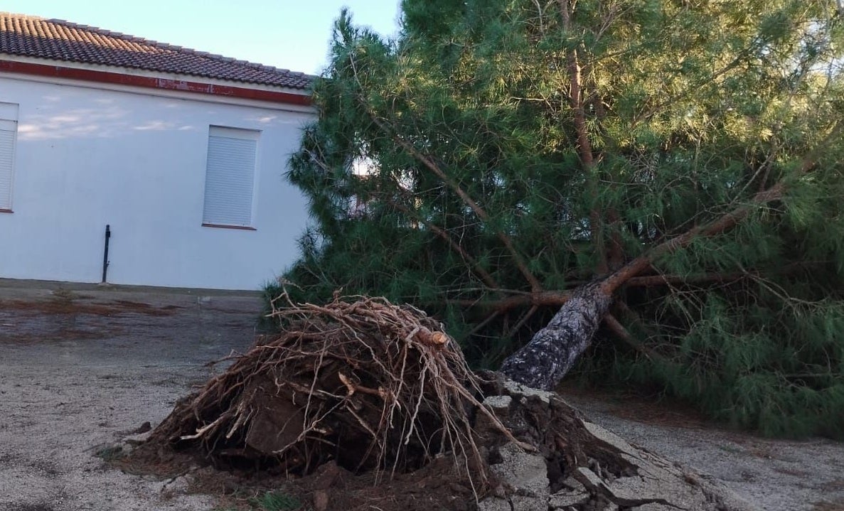 Estos avisos estuvieron relacionados con la caída de árboles y ramas, daños en tejados y cubiertas, así como desprendimientos de cornisas y daños en cableado, entre otros. En ninguno de ellos hubo daños personales. Esas incidencias no solo se produjeron en vías públicas, sino también dentro de instalaciones. Prueba de ello es que se cayeron tres árboles en el colegio Las Américas, dos en el patio de su edificio principal, en la avenida de América y uno en su centro de Infantil, en la calle Olalla. También se han dañado diferentes cubiertas de las naves del Mercado Regional. Todo ello se une a la caída de árboles en zonas de residencias de mayores. Fuentes municipales también matizan que hubo avisos vinculados con propiedades privadas, en los que se informó de cómo se tenía que actuar.