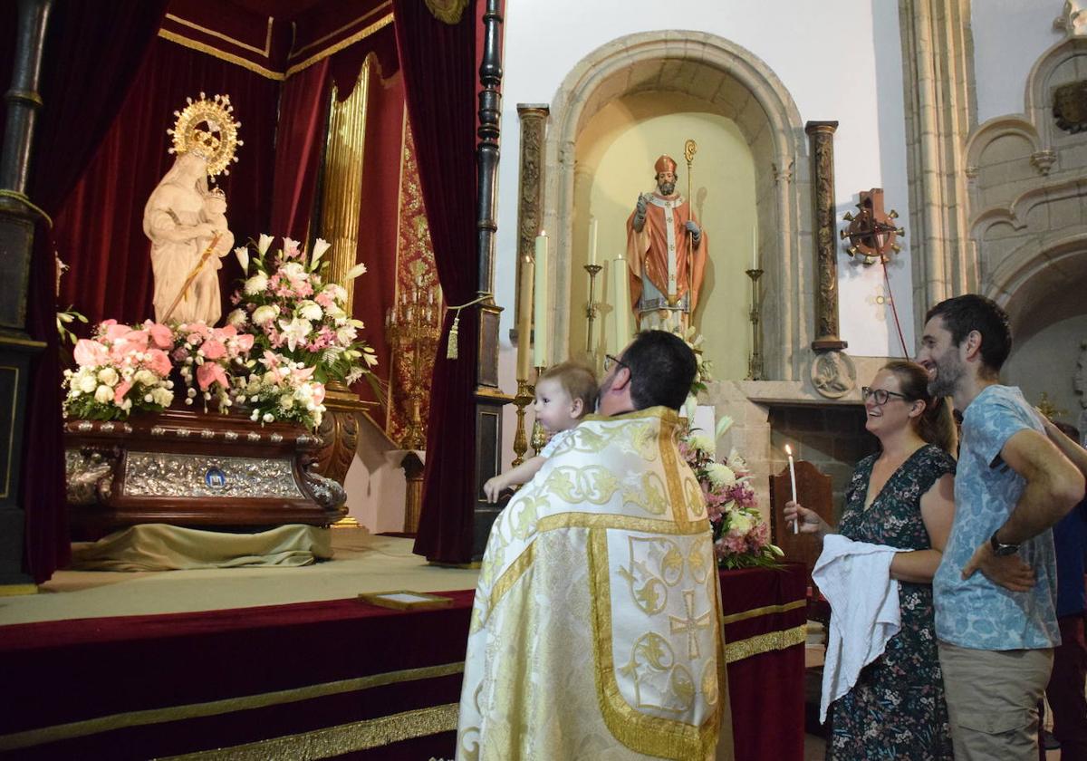La Hermandad Virgen de la Victoria organizó este domingo la presentación de los recién nacidos a la Patrona en la iglesia de San Martín, en un acto especial.