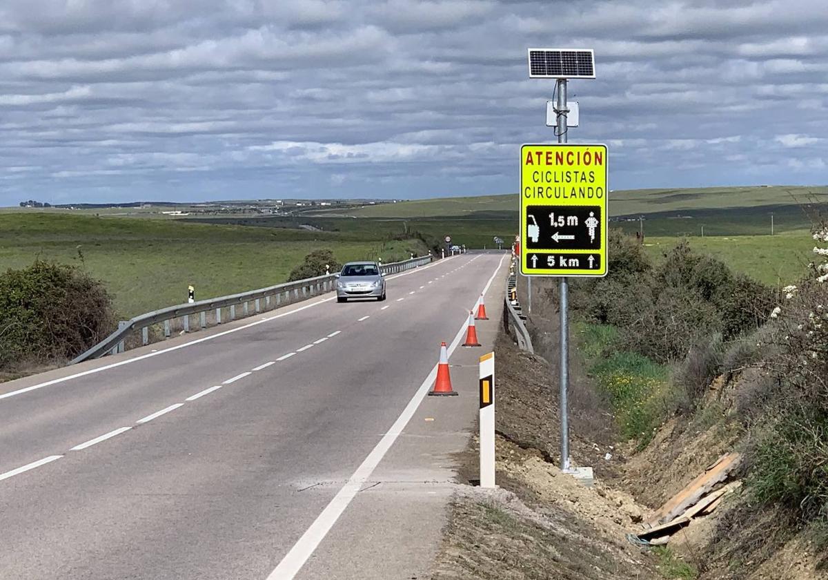 Gómez recuerda que su proyecto consiste en un dispositivo compuesto por una señal vertical inteligente y balizas led. Mediante la inteligencia artificial, se detecta al ciclista y, seguidamente, se activa la señalización en el momento oportuno para avisar al resto de usuarios de la carretera que acaba de pasar el ciclista circulando. Todo ello es posible a la tecnología especializada, junto a esa inteligencia artificial desarrollada por la entidad. Estos dispositivos han sustituido a un lazo inductivo y un radar que hacían la discriminación de los usuarios en la carretera por la velocidad. «Con la inteligencia artificial la eficacia es del 100% para distinguir a un ciclista frente a otros usos de la carretera. Antes, el porcentaje era del 90%». Recuerda que el cambio de tecnología se aplicó, gracias a una ayuda de la Junta de Extremadura.