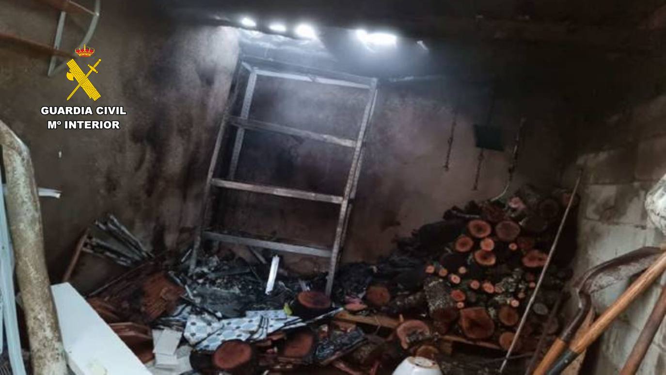 Tan pronto como llegaron los bomberos, estos refrescaron la zona incendiada y dieron por extinguido el fuego, indicando como inicio del mismo una estancia de la vivienda que la mujer dedicaba al almacenaje de leña, utensilios y productos inflamables y donde, además, había guardado un cubo con las cenizas de la chimenea del día anterior, pudiendo haber originado el incendio una pavesa o las propias brasas de las cenizas.