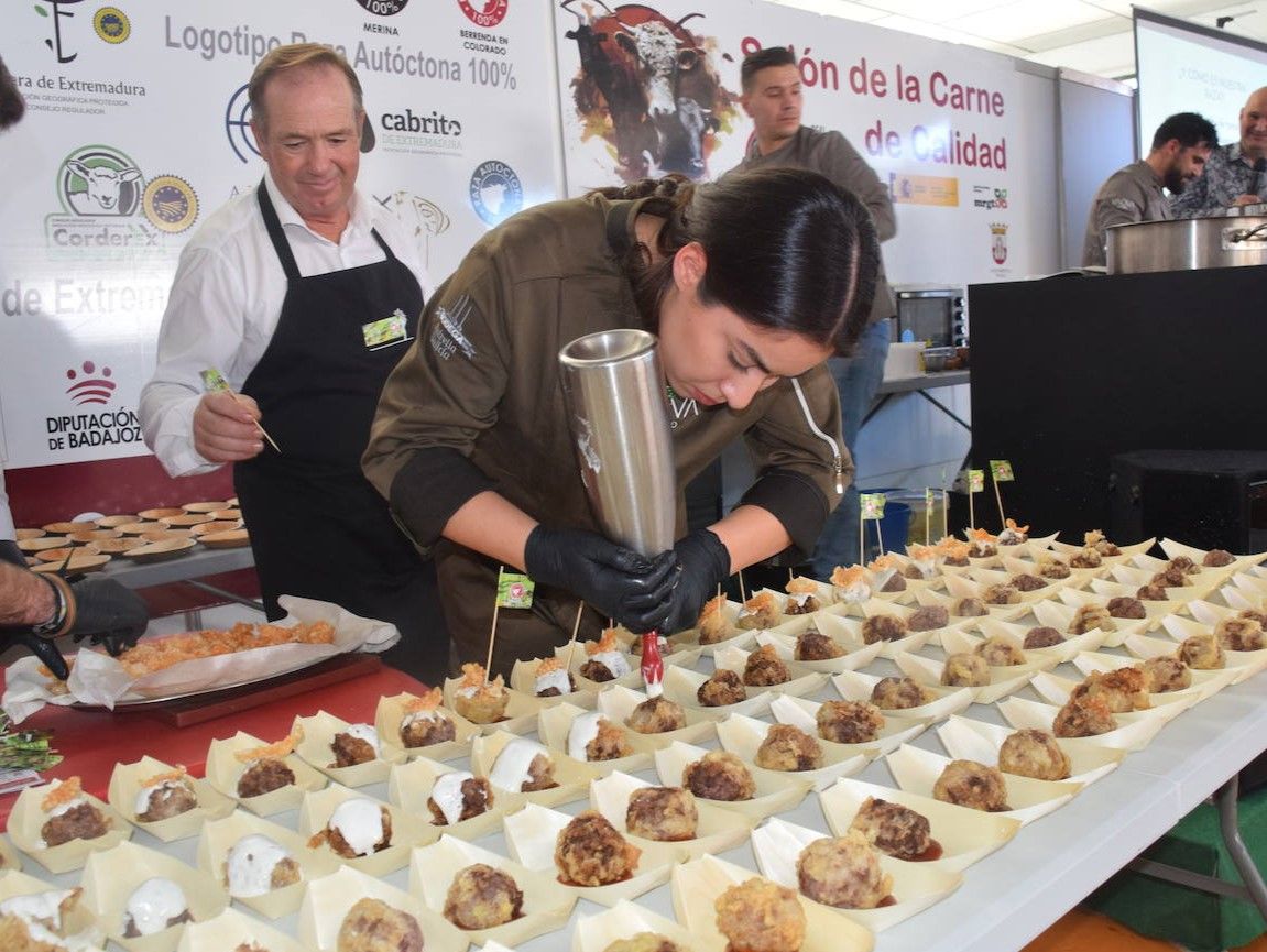 Este salón de la carne será cerrado el sábado por Emilio Nogales, jefe de cocina del restaurante Artigi de Castuera. Elaborará buñuelos de IGP Carne de Ávila, con queso curado de vaca, mayonesa ahumada y sal de paleta ibérica. También se podrá probar royal de cordero Merino 100% Raza Autóctona, con espuma de queso de oveja, ciruelas frescas y jugo de cordero, así como un ravioli de buey Retinto 100% Raza Autóctona con puré de espinacas y níscalos. Estas degustaciones se terminarán con una 'napolitana de IGP Cabrito de Extremadura con salsa de curry, jugo de cabrito y hoja de garbanzos.