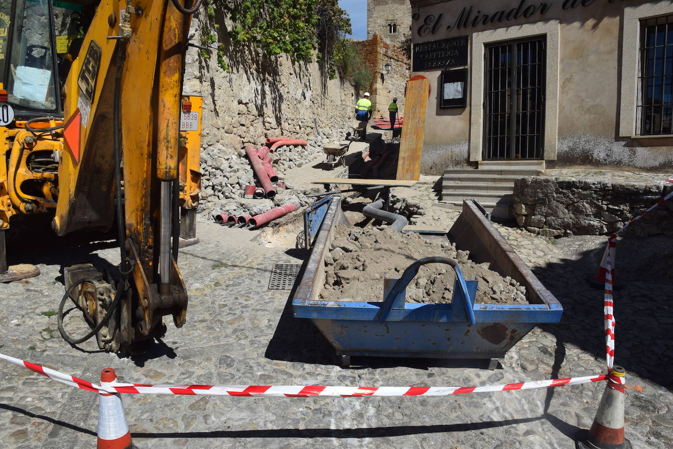 Estos trabajos comenzaron este verano, aunque se pararon con motivo de las fiestas patronales. Desde el 19 de septiembre estas tareas se han reiniciado en la calle Alhamar, que es la vía habitual de bajada de vehículos desde el castillo. La intención ahora es no parar hasta que se terminen las actuaciones previstas, que afectan al corazón del casco antiguo.