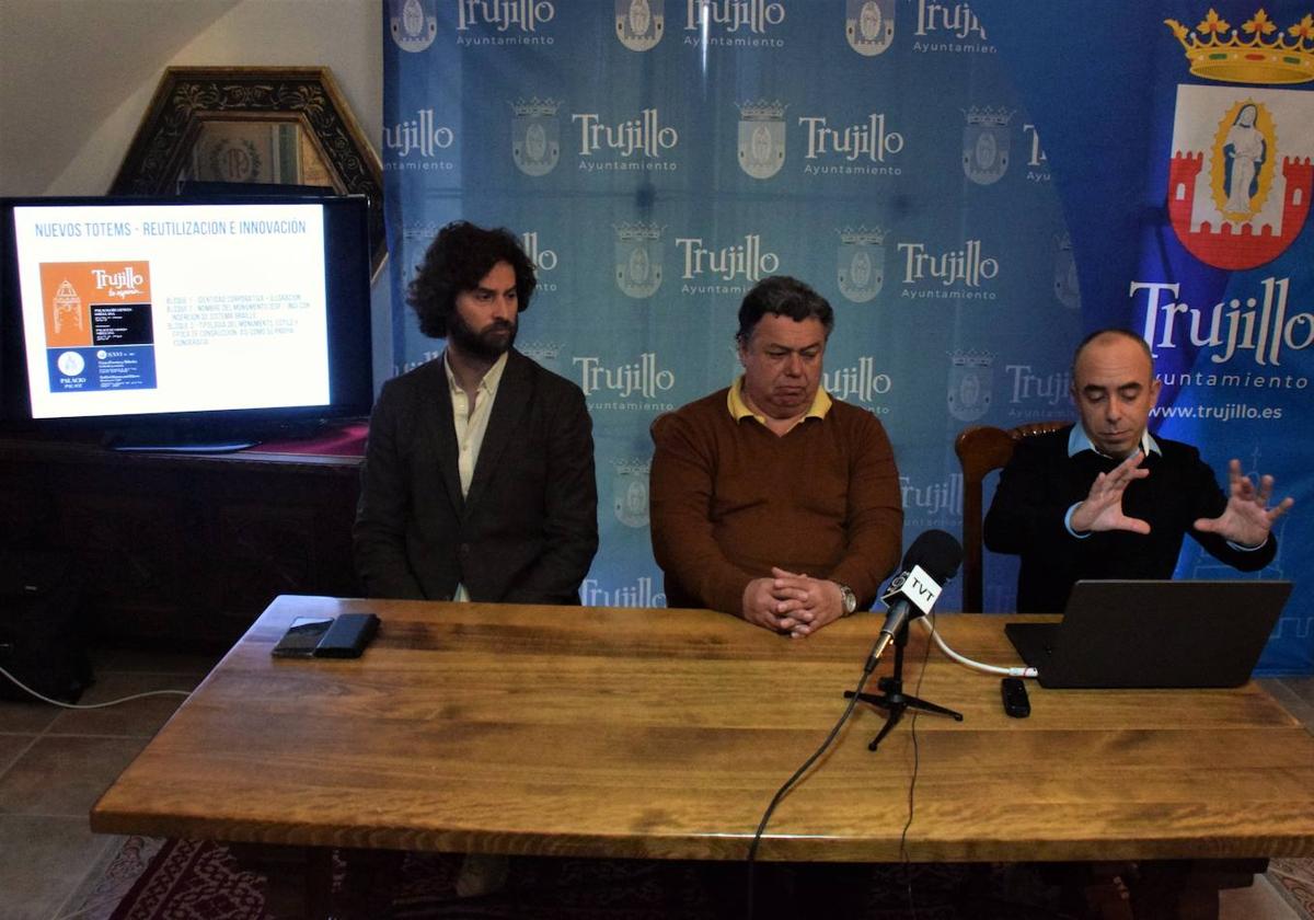 El Ayuntamiento ya ha completado la segunda fase de su proyecto turístico basado en la marca 'Trujillo te espera'. Hace algo más de un año, se presentó el nuevo portal web, así como un guía. Estas alternativas se han completado ahora con una propuesta de realidad aumentada mediante una aplicación móvil, además de los nuevos tótems turísticos y con la finalización de esa web. El proyecto ha sido financiado con una ayuda de la Junta de cerca de 40.000 euros, vinculada a 'pueblos inteligentes'.