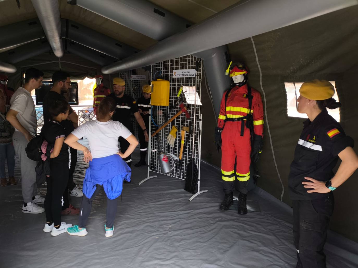 Ayer, se dio paso a esta muestra. Entre otros recursos se pudo ver un camión o vehículo polivalente de intervención para el transporte de, por ejemplo, otros vehículos, contenedores o grandes cisternas, entre otros elementos. También se montó una tienda de campaña con elementos habituales con los que se trabaja. Asimismo, hubo una ambulancia, con el soporte vital básico y el vehículo ligero de reconocimiento.