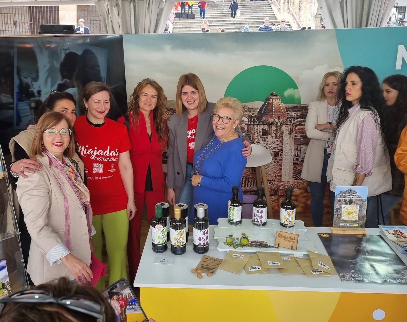 La agrupación comarcal dispone de un stand en este evento, situado en la plaza Mayor. Asimismo, ha sido la encargada de coordinar diferentes actividades vinculadas con la zona de Miajadas-Trujillo, así como de Madrigalejo. De este modo, durante esta mañana, el Ayuntamiento miajadeño ha dado a conocer el plan de dinamización 'Miajadas gastronómica', ha repartido almendras y ha ofrecido una degustación de aceite de oliva y de productos elaborados por artesanos, además de una muestra de queso con almendra.
